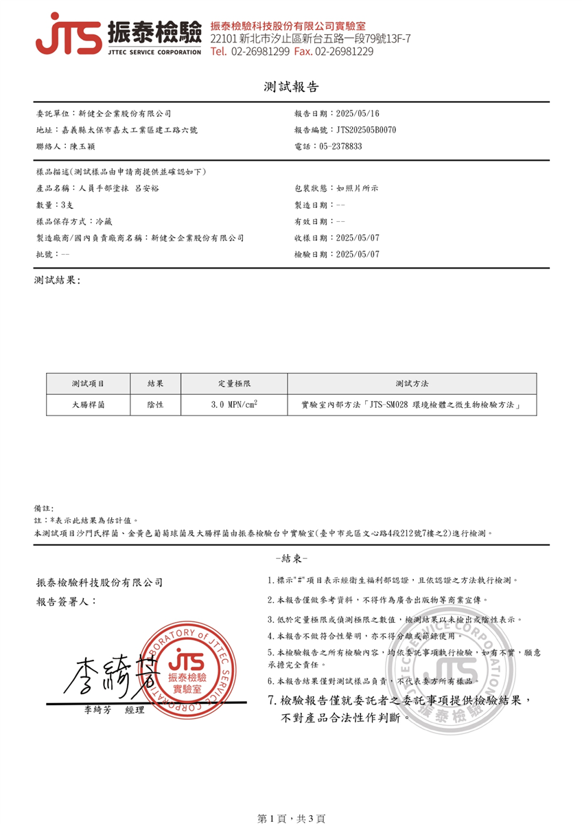 製程水微生物檢驗報告-糞便性鏈球菌+大腸桿菌群+綠膿桿菌